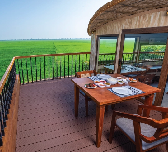 Discover the charm of Kerala’s past at Heritage Illam, a traditional home that blends timeless design with modern comfort. Once part of a royal family estate, this timeless structure showcases the rich heritage and architectural elegance of Kerala, offering a rare glimpse into the region’s regal past. Set in a serene backwater setting, this beautifully preserved space features wooden ceilings, open courtyards, and a calming atmosphere that invites you to slow down and unwind. Whether you're on a cultural journey or simply looking for a peaceful escape, Illam offers an authentic Kerala experience that feels both intimate and unforgettable.