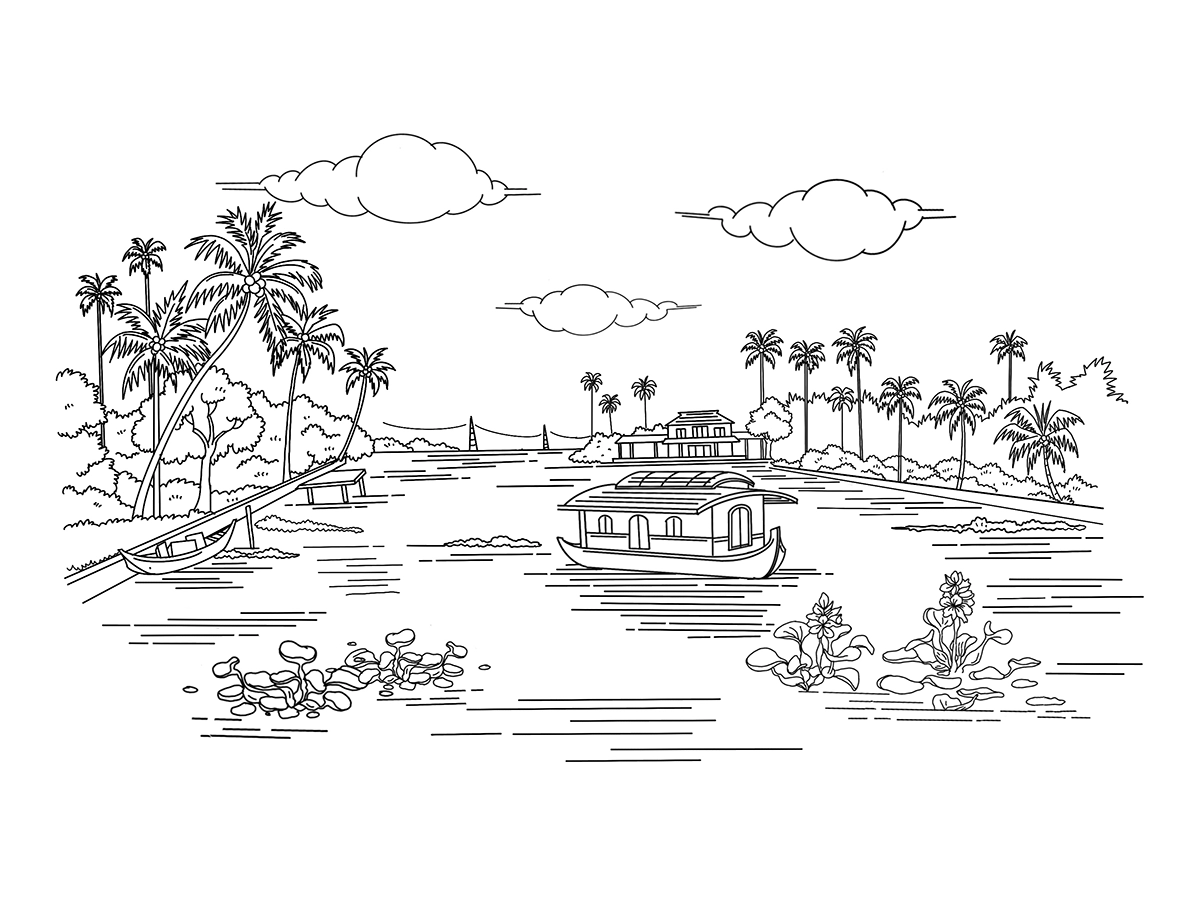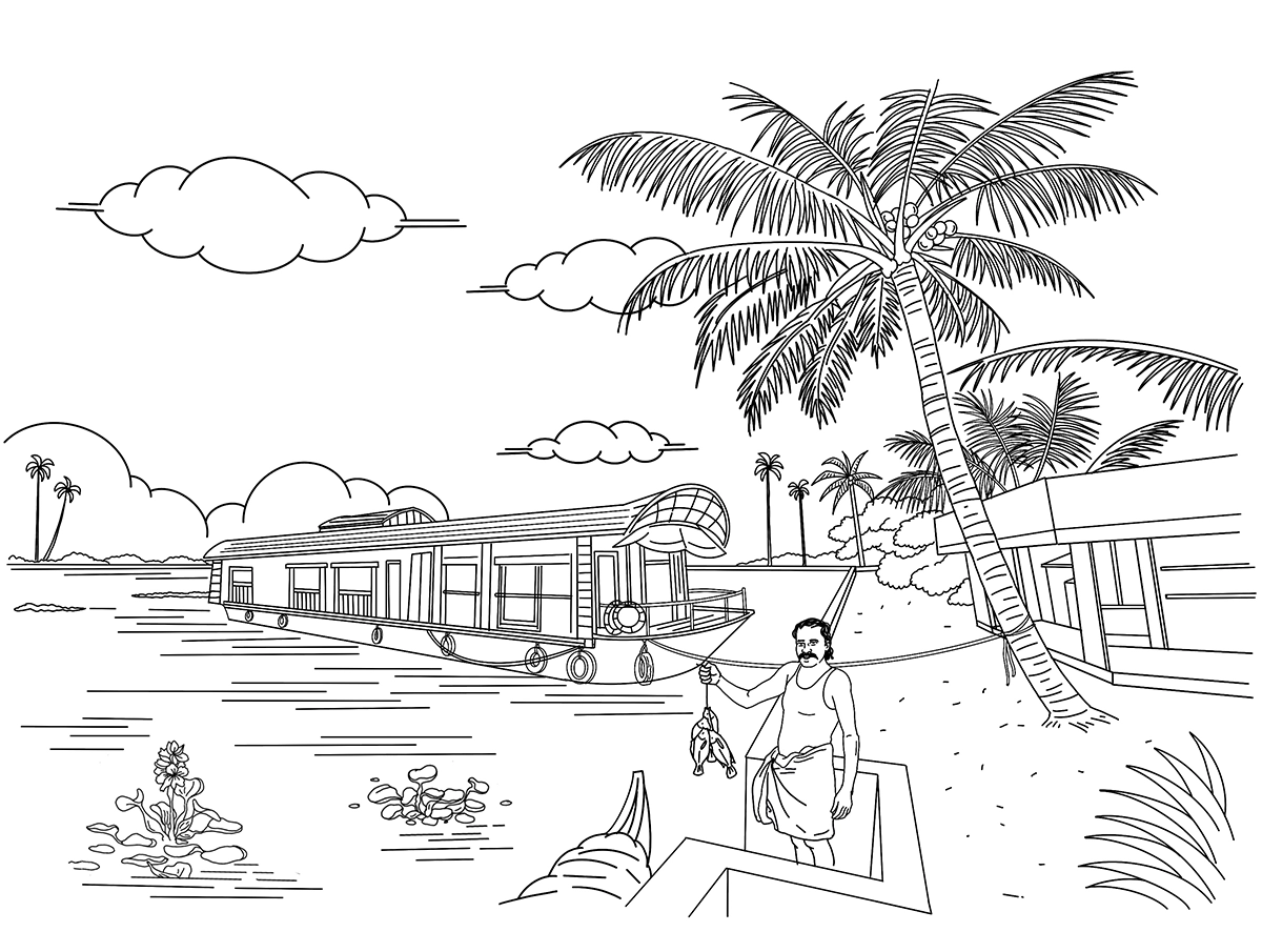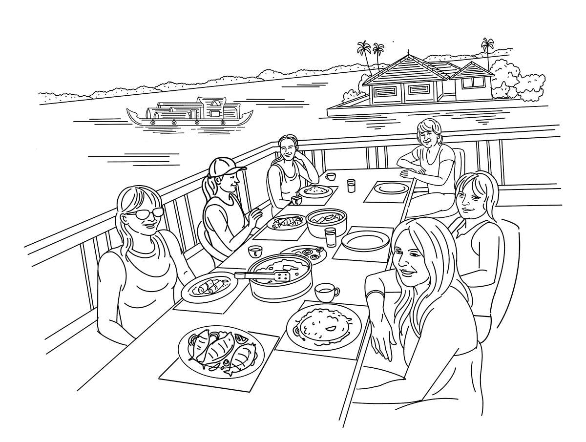 The houseboat anchors for lunch. As you dine, take in the scenes of Kerala's timeless countryside, with paddy fields shimmering in the sun, swaying coconut palms, and villagers going about their daily lives.
