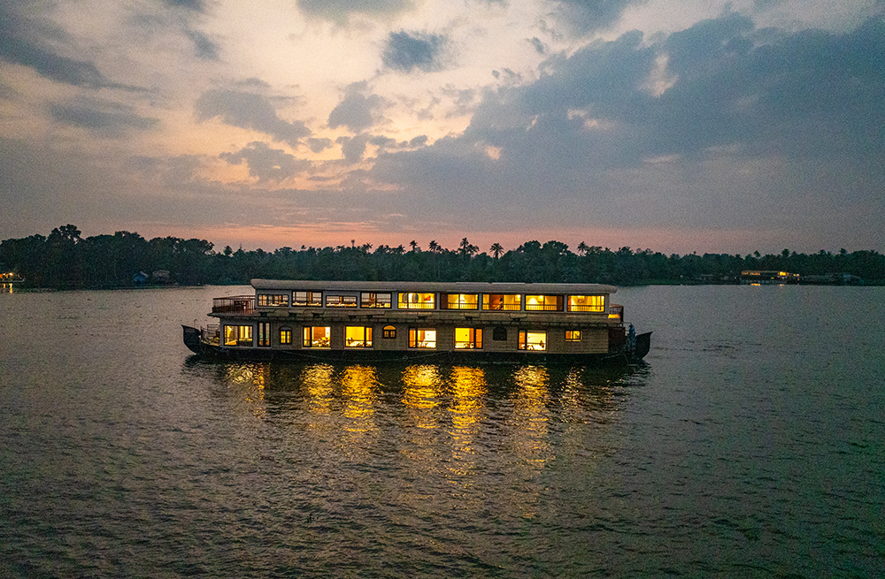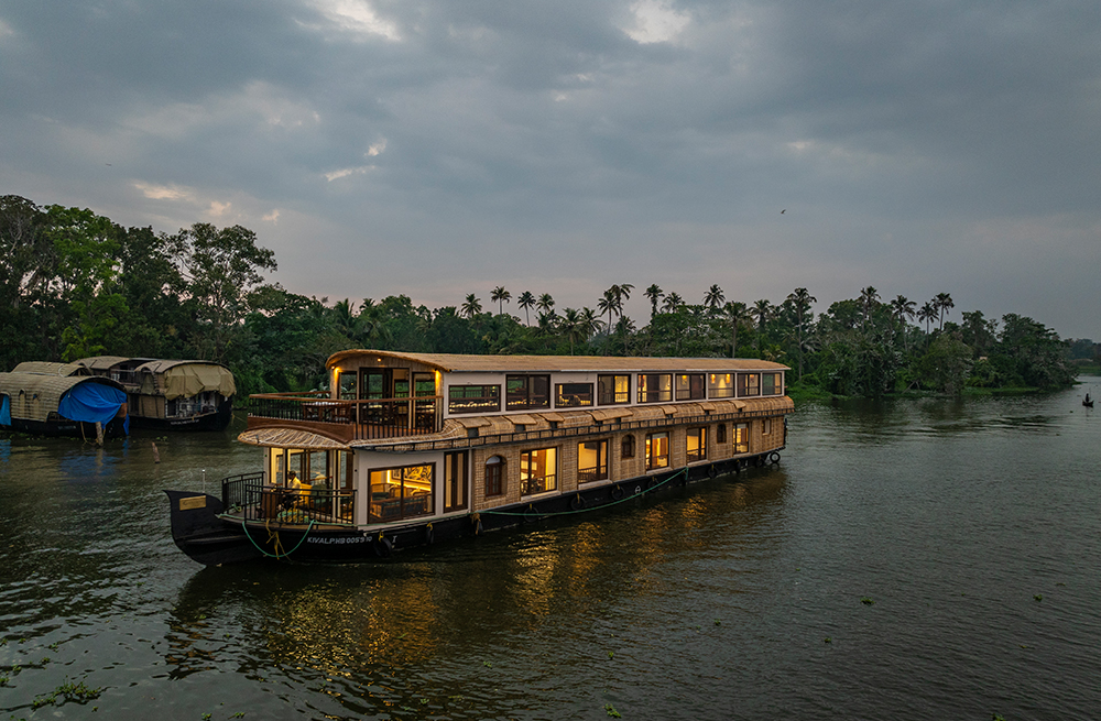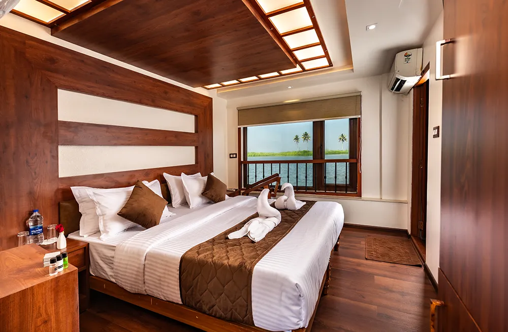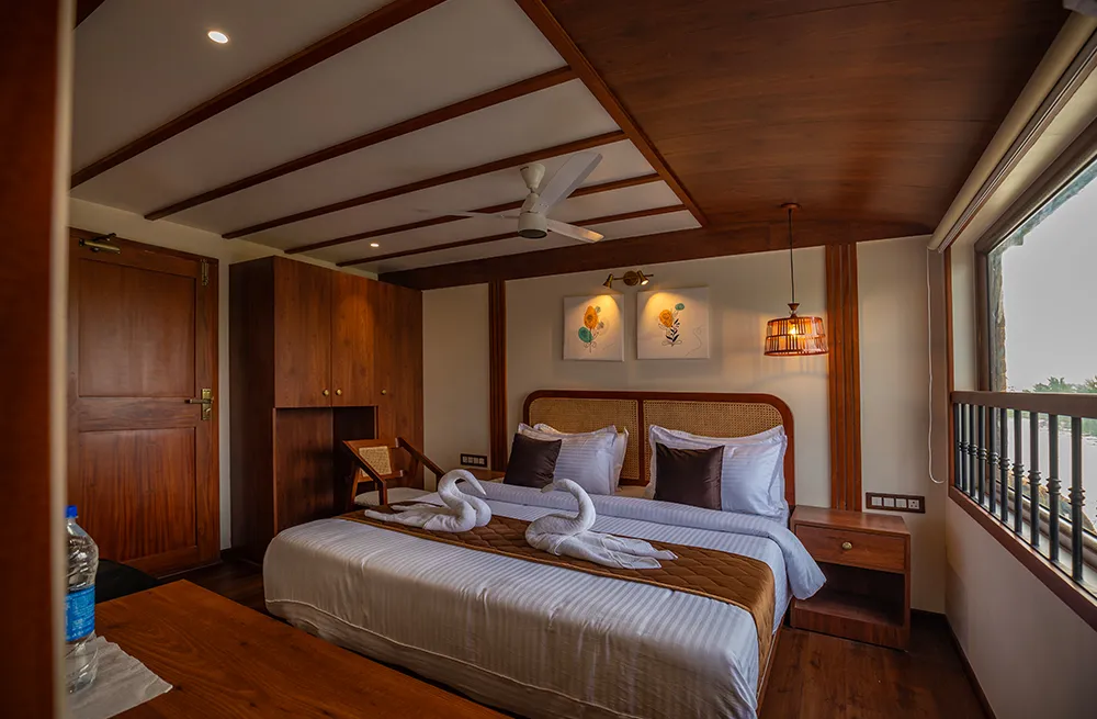 Welcome aboard Riverine Classic, our newly launched ultra-luxury double-decker houseboat featuring 8 well-furnished bedrooms designed to rival star-class hotels. Enjoy wooden interiors, modern amenities, and stunning views through clear glass sliding doors. Relax in the elegant lobby, dine in style, and unwind on the open deck as you cruise through serene waters. Experience unmatched comfort, class, and scenic beauty. Riverine Classic redefines luxury cruising.