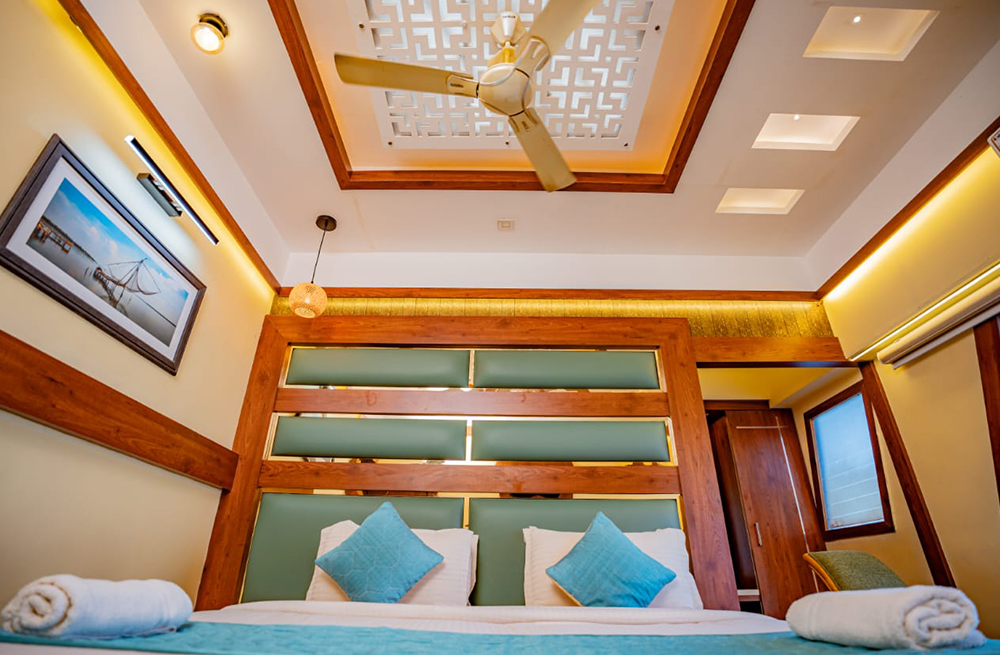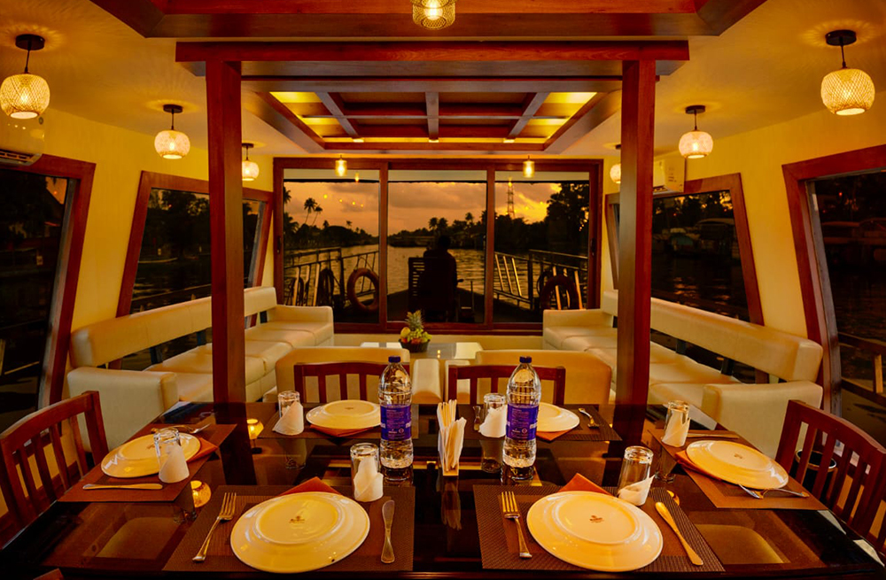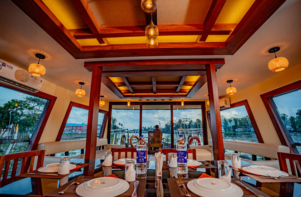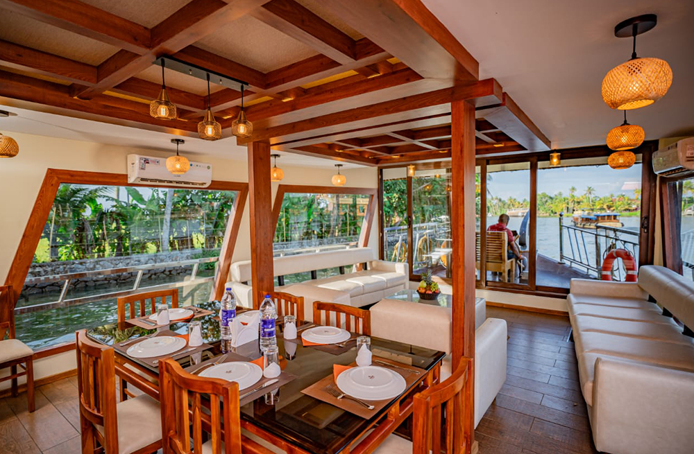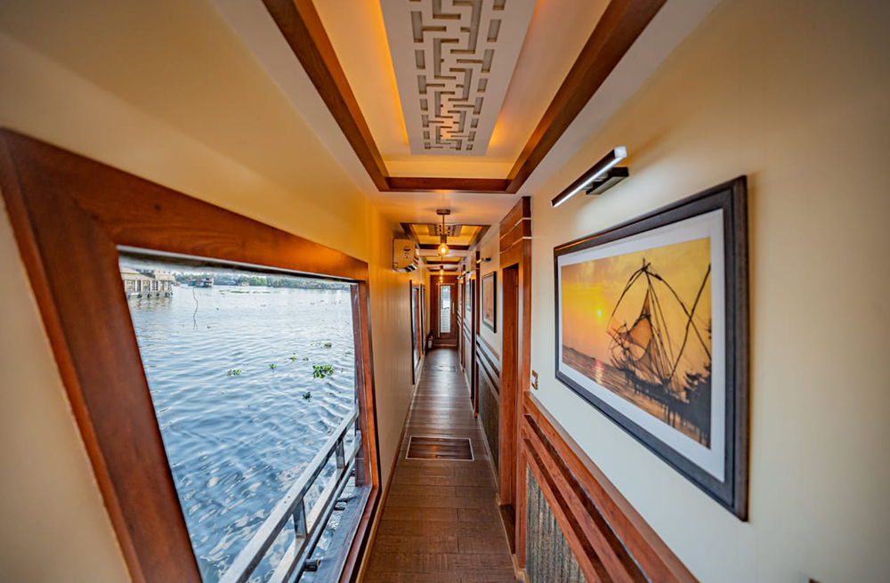 Step into Lakeshore, the ultra-luxury houseboat crafted for premium travellers. This elegant double-decker features a chic lobby, stylish dining area, and three beautifully furnished rooms on the ground floor. The upper deck offers panoramic views of the tranquil backwaters, blending luxury with the natural beauty of the surroundings. Experience top-tier service, comfort, and scenic beauty. Lakeshore is your perfect escape on the water.